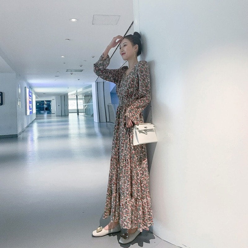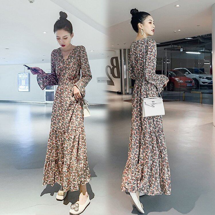 ワンピース レディース 40代 春秋 キレイめ 花柄 マキシ丈ワンピース ロング丈 Aライン