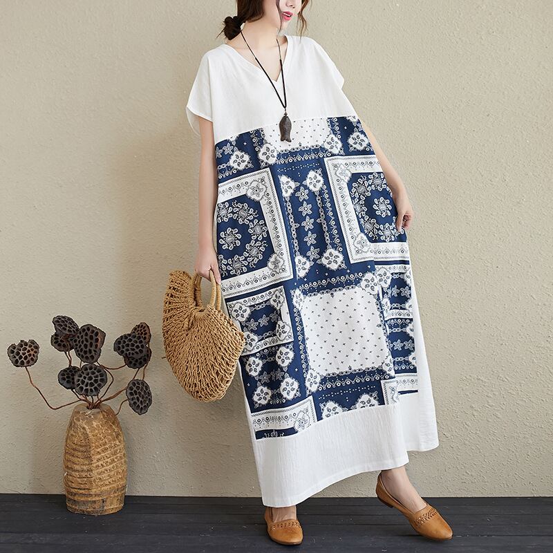 春夏半袖花柄ワンピース ロングワンピースカジュアル