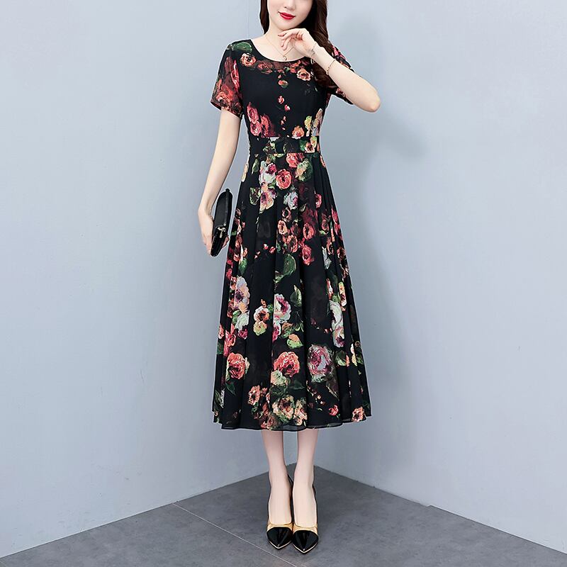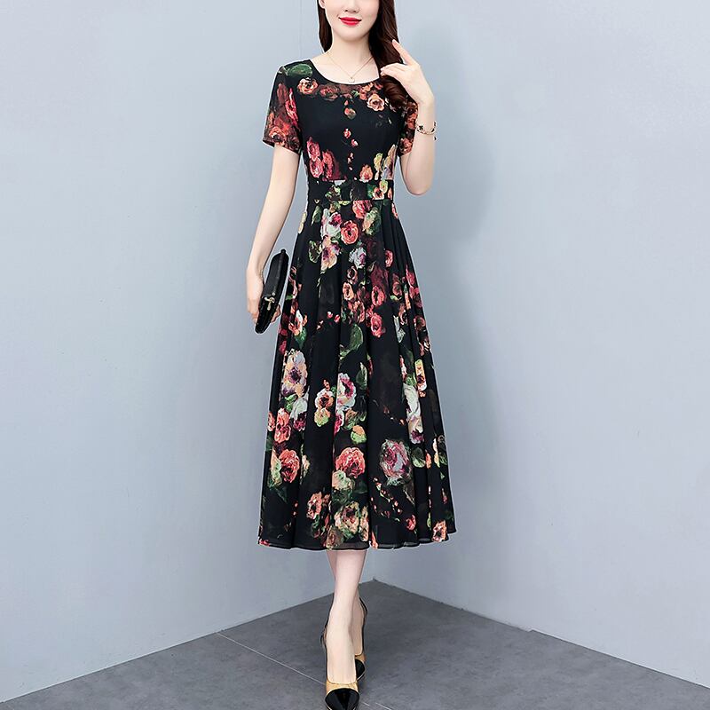 春夏花柄ワンピースロングワンピースカジュアル