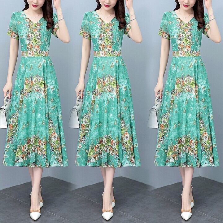 春夏花柄ワンピースロングワンピースカジュアル