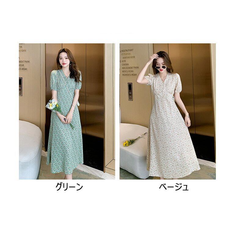 ワンピース レディース マキシワンピース 春夏新作 半袖ワンピース 花柄シフォ Vネック フレ