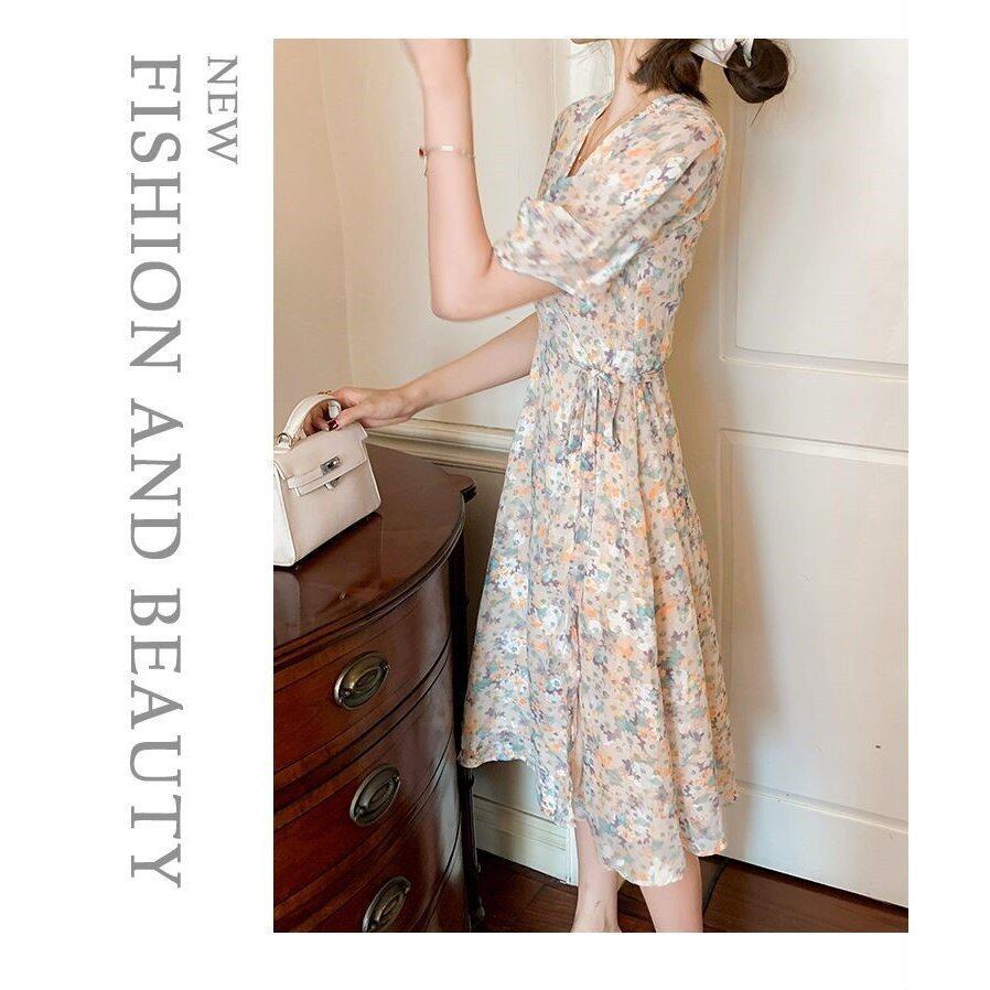 ワンピース レディース 40代 きれいめ膝丈ワンピース 春夏新作 半袖ワンピース 花柄シフォン