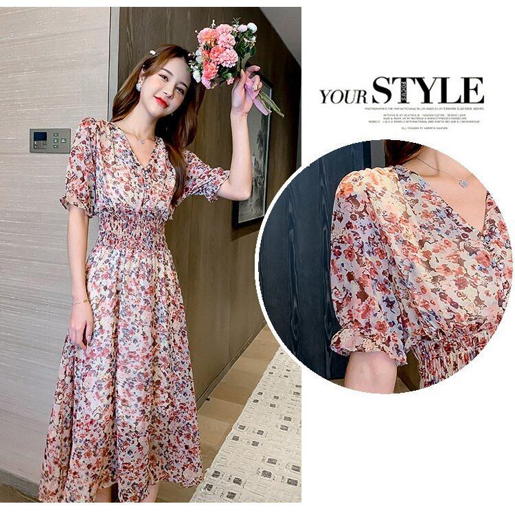 ワンピース レディース 40代 マキシワンピース 春夏新作 半袖ワンピース 花柄シフォン Vネック