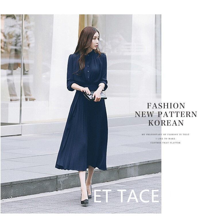 ファッション通勤ハイウエストコットンAラインロングデートワンピース