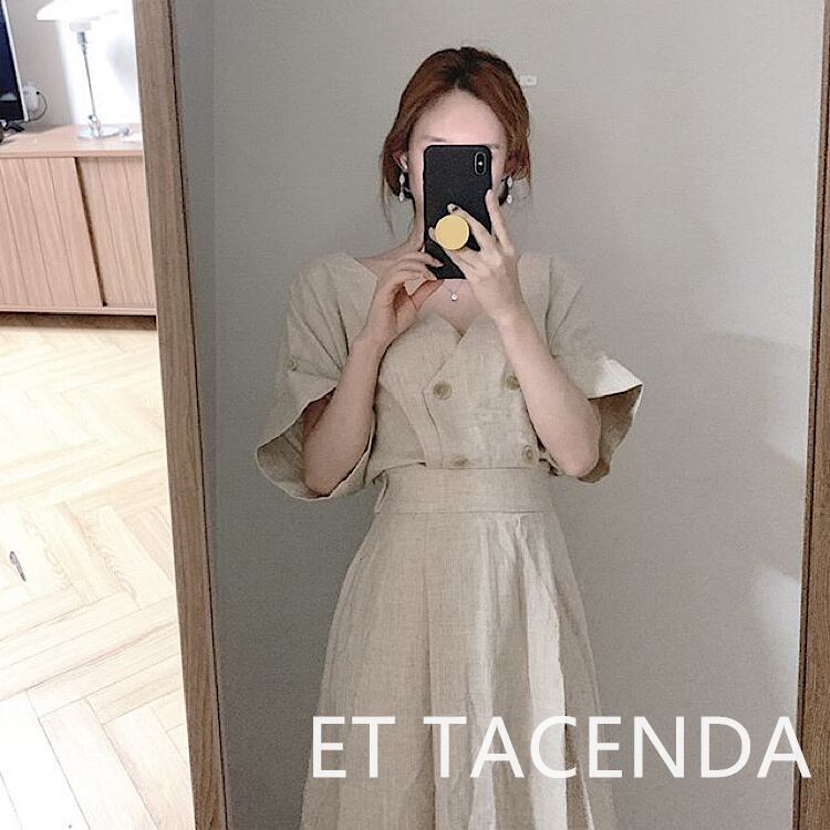 パフスリーブ Vネック ダブルブレスト ロング 夏 カジュアルワンピース