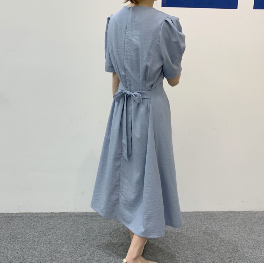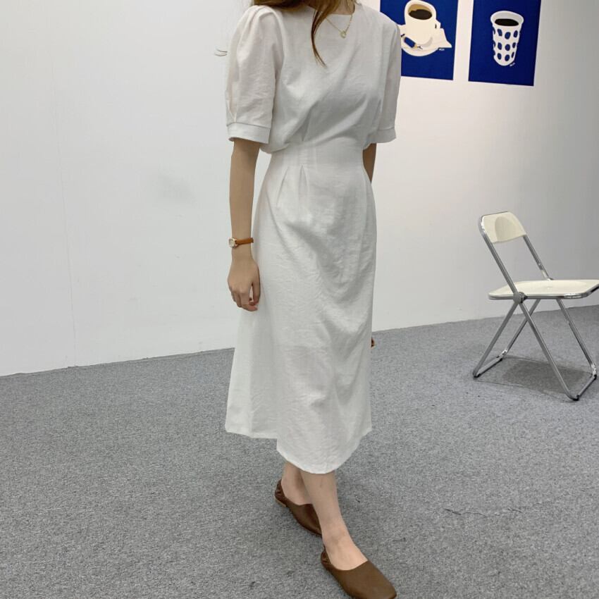 シャツワンピース ワンピース ロングワンピース マキシワンピース パフスリーブ 韓国ファッション 着痩せ