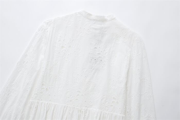 ゆったり透かし刺繍ワンピース長袖ワンピースロングワンピース