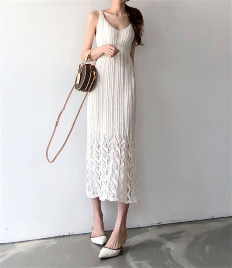 ベストワンピース 夏 気質 アイスシルク ニットワンピース 透かし彫り