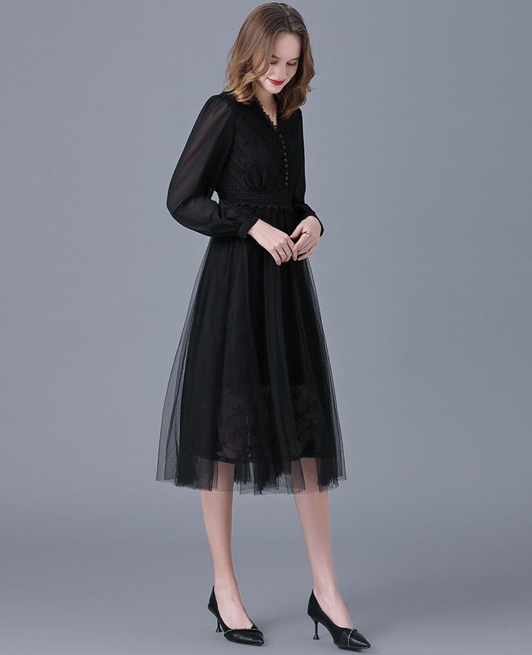 L~6L大きいサイズ 披露宴 パーティー 大人優雅 レース切替 ドレスワンピース